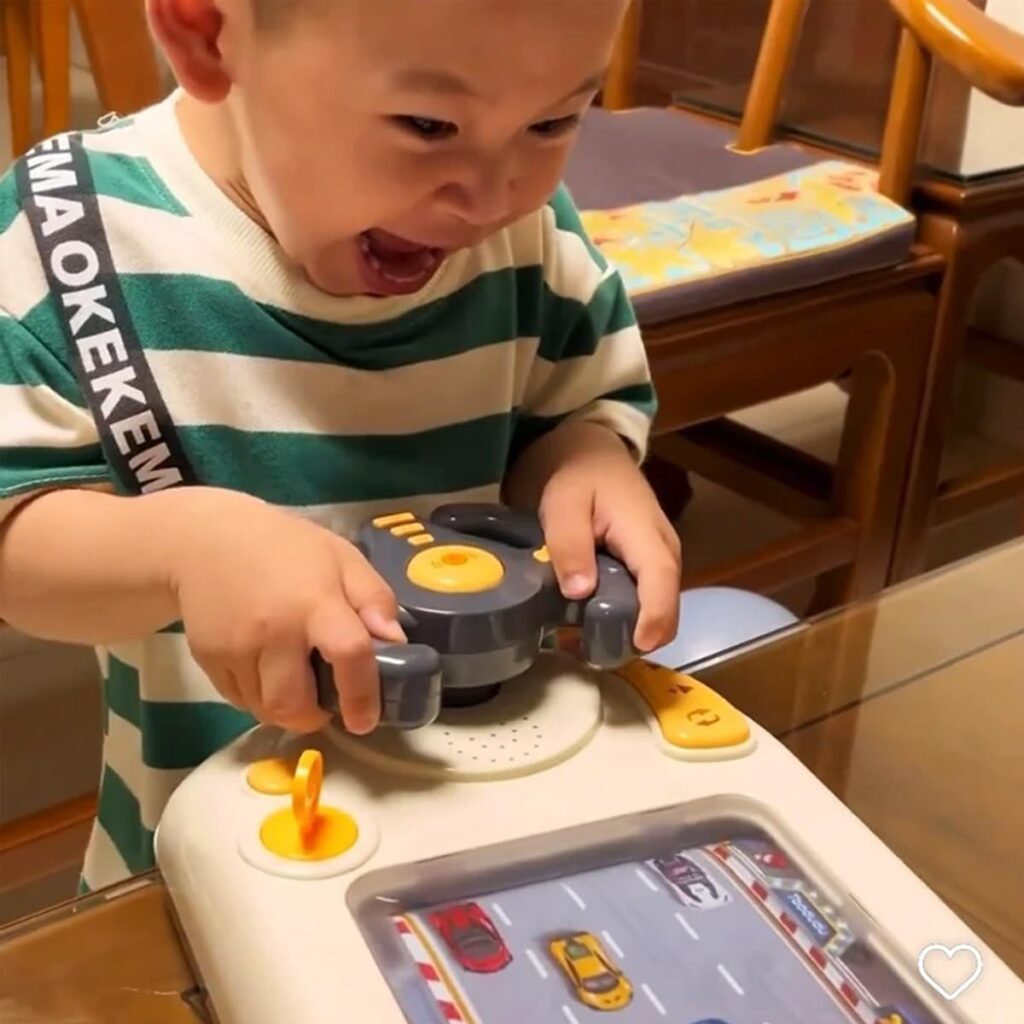 The driving steering wheel toy is made of high-quality ABS material, with 4 suction cups on the bottom, it is not easy to fall or slide when playing.